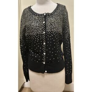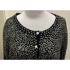 AQUA Women's Black Long Sleeve Sequin Wool Blend Button Up Cardigan - Size Med