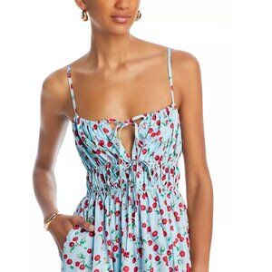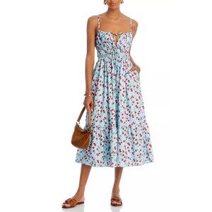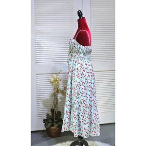 AQUA Women's Cherry Print Spaghetti Straps Tiered Skirt Midi Dress Size L 2801