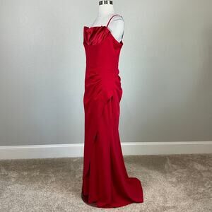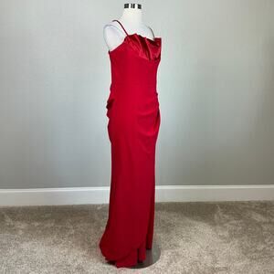 AQUA Women's Formal Dress Size 12 Red Crepe and Satin Long Column Evening Gown