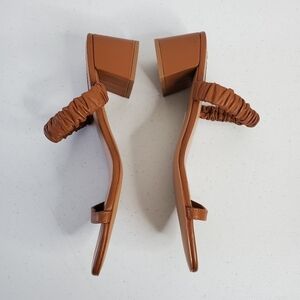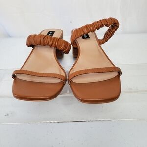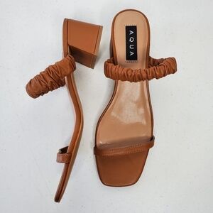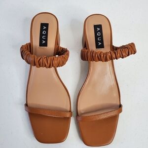 NWOT AQUA Women's Lolah Slip On Sandals Square Toe Chunky Heel Size 10. Colorway - tan leather (caramel).