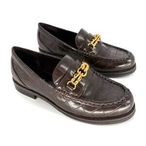 AQUA Women’s Perle Crocodile Embossed Loafers in Brown Faux Leather – Size 6