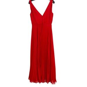 The Aqua Women's Red Evening Dress with a Pleated Skirt in size S is a stylish and versatile garment perfect for formal occasions such as weddings, parties, or cocktail events. The dress features a flattering V-neckline, a sleeveless design, and a long length that exudes elegance. Made from polyester, it is easy to care for with machine washable instructions.