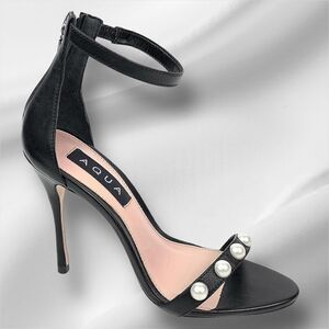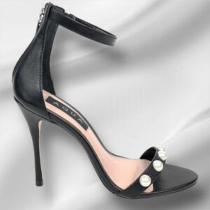 AQUA Women’s Sandalia Salto Alto Black/Pearl Heels in the Size 9