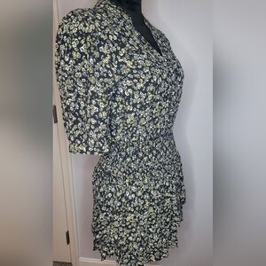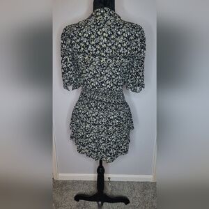 AQUA X BLOOMINGDALES Floral Black Smocked Dress. NWT