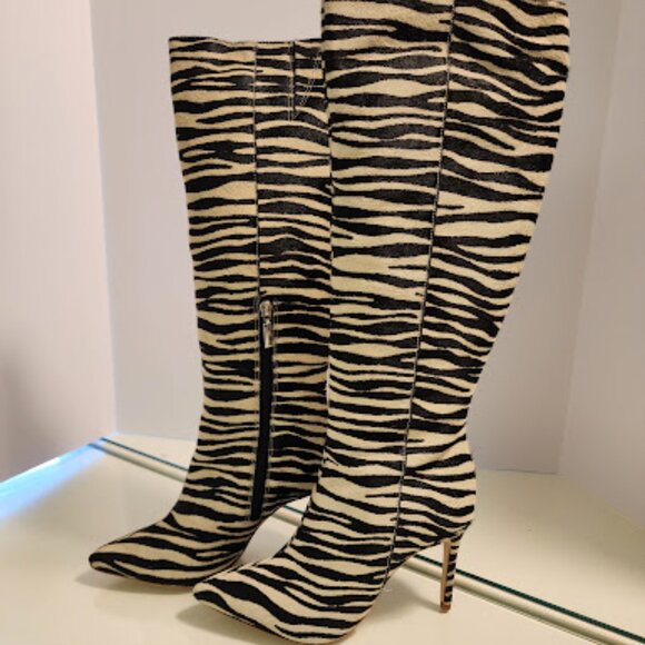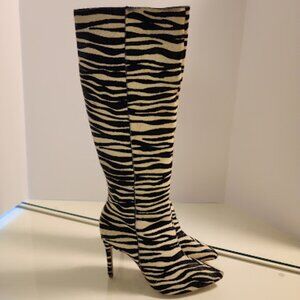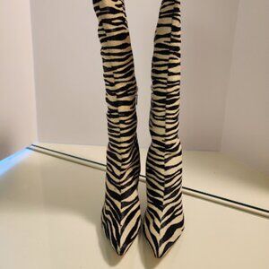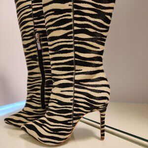 AQUA "Indiala" Zebra print calf hair high heel boots