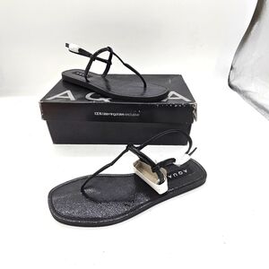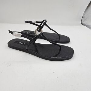 AQUA Zen Black Patent Flat Sandals Size 7.5 – Chic Adjustable Straps New In Box