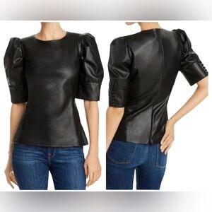 AQUA faux leather top black short sleeve Size Small