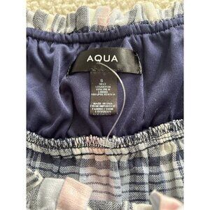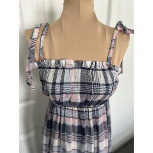 AQUA for Bloomingdale's Navy/Pink Plaid Pull-Over Tie Up Shoulder Maxi Dress