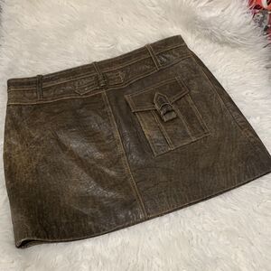 Size 4 AQUA leather mini skirt zip fly pockets fully lined women’s Excellent preloved preowned condition except as shown on picture 6/7 - pic 7 when laying flat