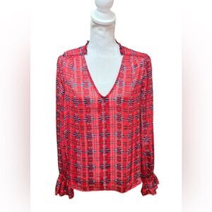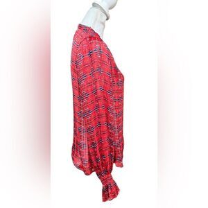 AQUA x Pendleton® Smocked V Neck Blouse size L
