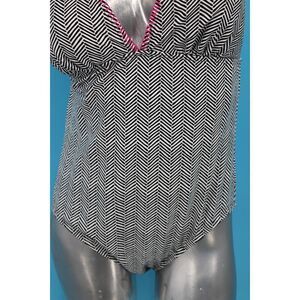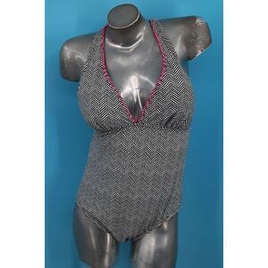 AQUA COUTURE BLACK WHITE WITH HOT PINK ONE PIECE SIZE LARGE SWIMSUIT WOMENS