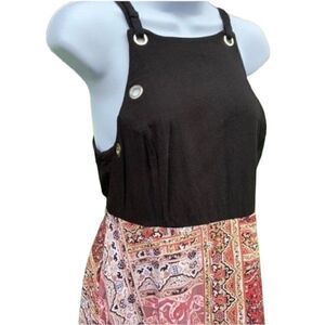 Beautiful and perfect, just like new. This stunning dress in Women's Size S is in beautiful and like-new condition, offering a chic and fashionable addition to your wardrobe. The dress combines a graphic patterned skirt with a backless black top, offering a unique and stylish look.