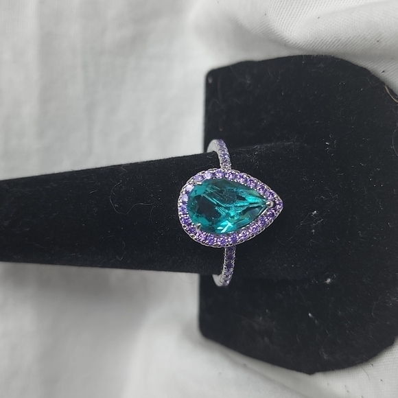 ๐ Beautiful Lab Created Dark Aquamarine ๐ Rhodium Plating ๐ Purple Accent ๐