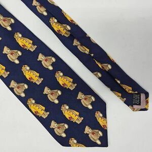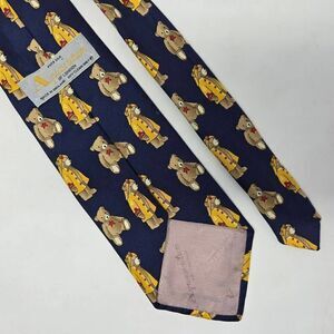 AQUASCUTUM OF LONDON SILK TIE BLUE BEAR IN RAINCOAT PATTERN SMOOTH 3.5" X 58"
