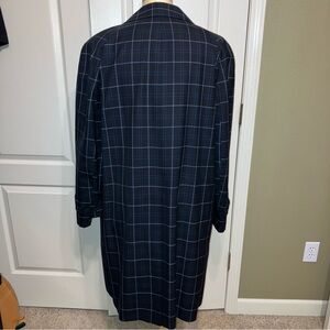 AQUASCUTUM Wool Trench Coat BLACK / BLUE / WHITE Plaid WINDOWPANE - Sz 42 R