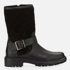 AQUATALIA 6.5 7.5 LILA BLACK LEATHER QUILTED SUEDE MOTO ANKLE BOOTS