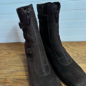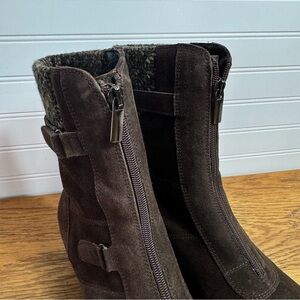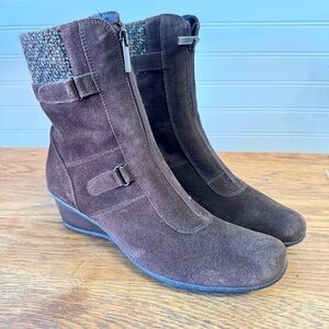 AQUATALIA Ankle Boot BROWN Suede Front Zip Weatherproof WEDGE Sz 12