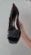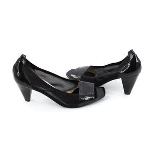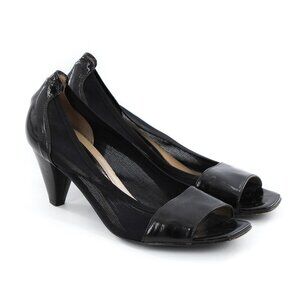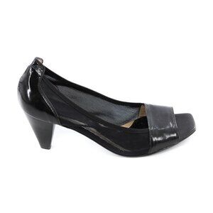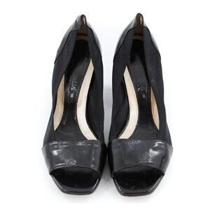 AQUATALIA Black Mesh Leather Open Toe Pumps