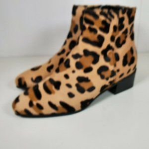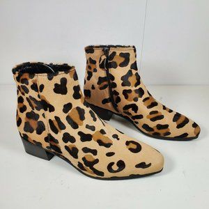 AQUATALIA Fuoco Calf Hair Leopard Animal Print Ankle Heel Boots Booties.