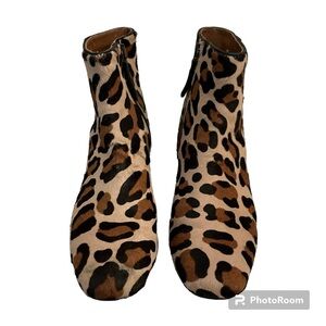 AQUATALIA Italian Ulyssaa Leopard-Print Calf Hair Bootie Ankle Boots Size 6