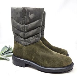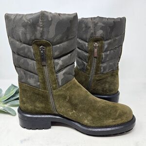 AQUATALIA Lori Waterproof Boots Olive Green Suede | Camo Nylon Size 8