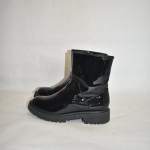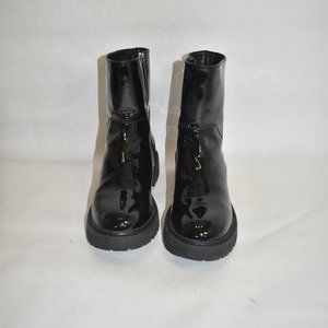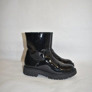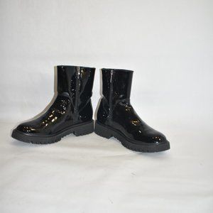 $550 AQUATALIA PATENT LEATHER WATERPROOF MOTO lug BOOT BLACK 8.5 (P1)