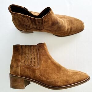 AQUATALIA Rosalin Weatherproof Suede Ankle Boot Size 9.5 Whiskey Tan Italy