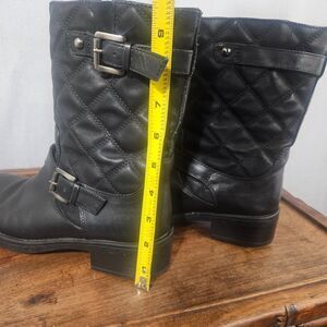 AQUATALIA Sweetie Moto Boots Size 8 Black Leather Made in Italy Quilted Buckles 10" Height