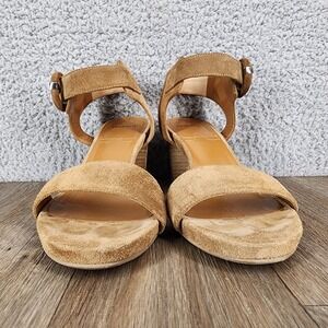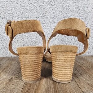 AQUATALIA Women's Size 7 Suede Ankle Strap Block Heel Sandals Tan Brown