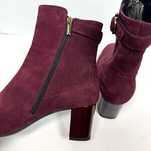 AQUATALIA by Marvin K Ankle Boots Burgundy Suede High Heel Buckle Size 11