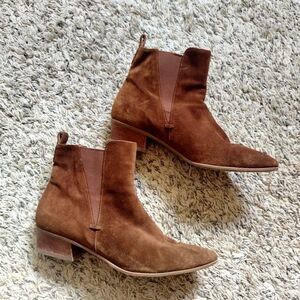 AQUATALIA-Fausta-Cognac Brown Suede-Slip-On Ankle Bootie Sz 7,5