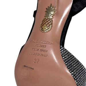 AQUAZZURA Salome Black Velvet & Crystal Slingback 3" Heel Size 37