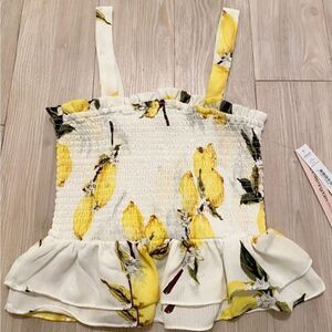 AQUAâxâHelen OwenâLemonâPrintâSmockedâTop