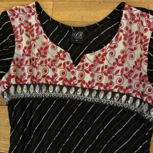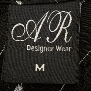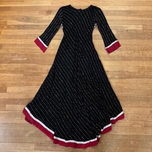 AR Designer Wear long sleeve black red silver embellished maxi dress size M b30