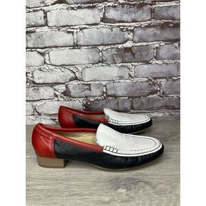 ARA Atlanta White Leather Red Black Slip On Loafers Shoes Women’s Sz 7M US/38EU