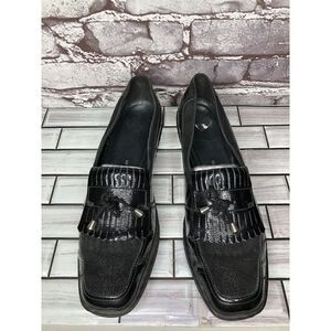 ARA Naturform Black Leather Croc Embossed Kiltie Bow Wedge Shoes Women’s 7.5M US