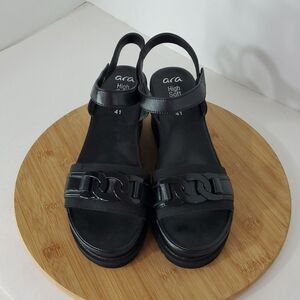ARA Women's Palmdale Black Leather Wedge Sandal Size EU 41