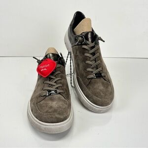 Women's taupe/brown suede with bronze accent REGINA low top sneaker from ARA, size 7.5.