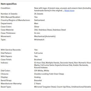>IMPORTED SWISS SUPERLUMINOVA LUMINOUS HANDS and BEZEL INDICES<