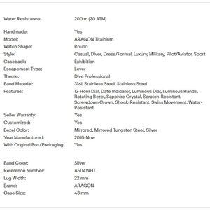 20 ATM plus SAPPHIRE Crystal w/Anti-Reflective and Date Window