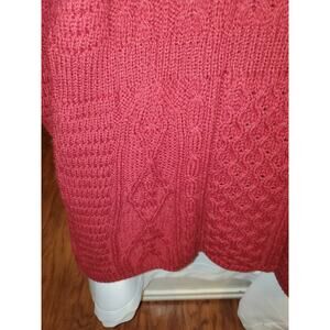 ARAN Ireland VTG Handmade 100%Wool Cardigan,Cable Knit Color Red three button, L