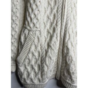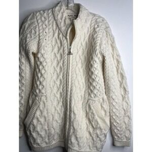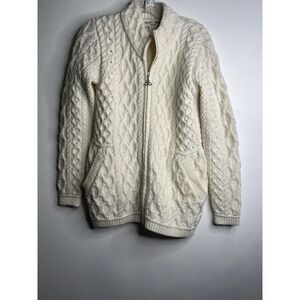 ARAN Mor Ireland 100% Merino Wool Zipup Cardigan Sweater Small Beige