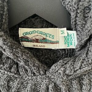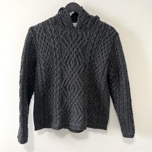 ARANCRAFTS MADE IN IRELAND FISHERMAN MERINO WOOL HOODED SWEATER