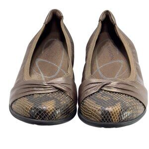 ARAVON Womens Brown Metallic Leather Flats Snake Print Toe Cap Cushioned Size 8M