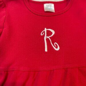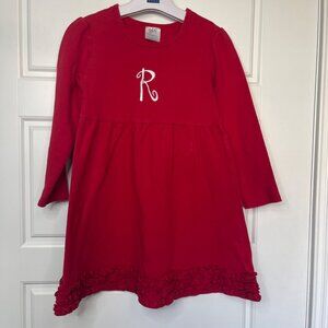 ARB Blanks "R" Monogrammed Knit Dress Girls Size 8 Red Long Sleeve Ruffle Hem