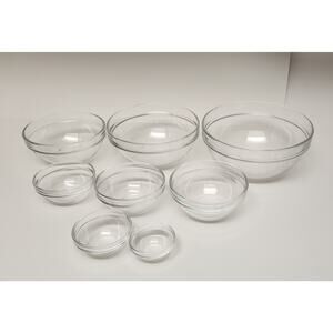 ARC France Vintage 8 PC Mixing Bowl Set Clear Glass Nesting Set