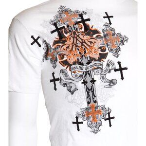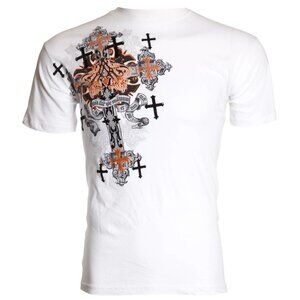 ARCHAIC by AFFLICTION White GODFREY Cross Short Sleeve Slim Fit Y2K T-shirt NWT