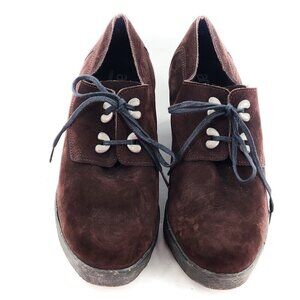 ARCHE Dark Brown Nubuck Leather Lace Up Booties Wedges