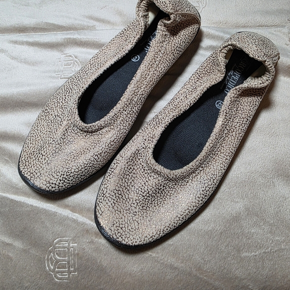 ARCOPEDICO Textured Tan & Gold Metallic Soft Knit Women's Ballet Flats Size 42