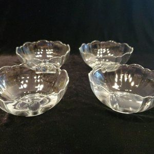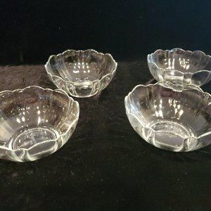Set of 4 Bengale Scalloped Edge Bowls clear Glass by Arcoroc. 4.75" diameter x 2" high. Perfect for cereal, salads, desserts etc. No chips cracks or breaks. Gently used. Multiple sets (2) are available in the same condition.